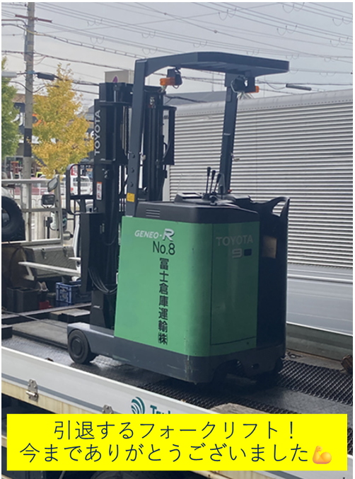 最後はこれまで12年間頑張ってくれたフォークリフトを見送りました。