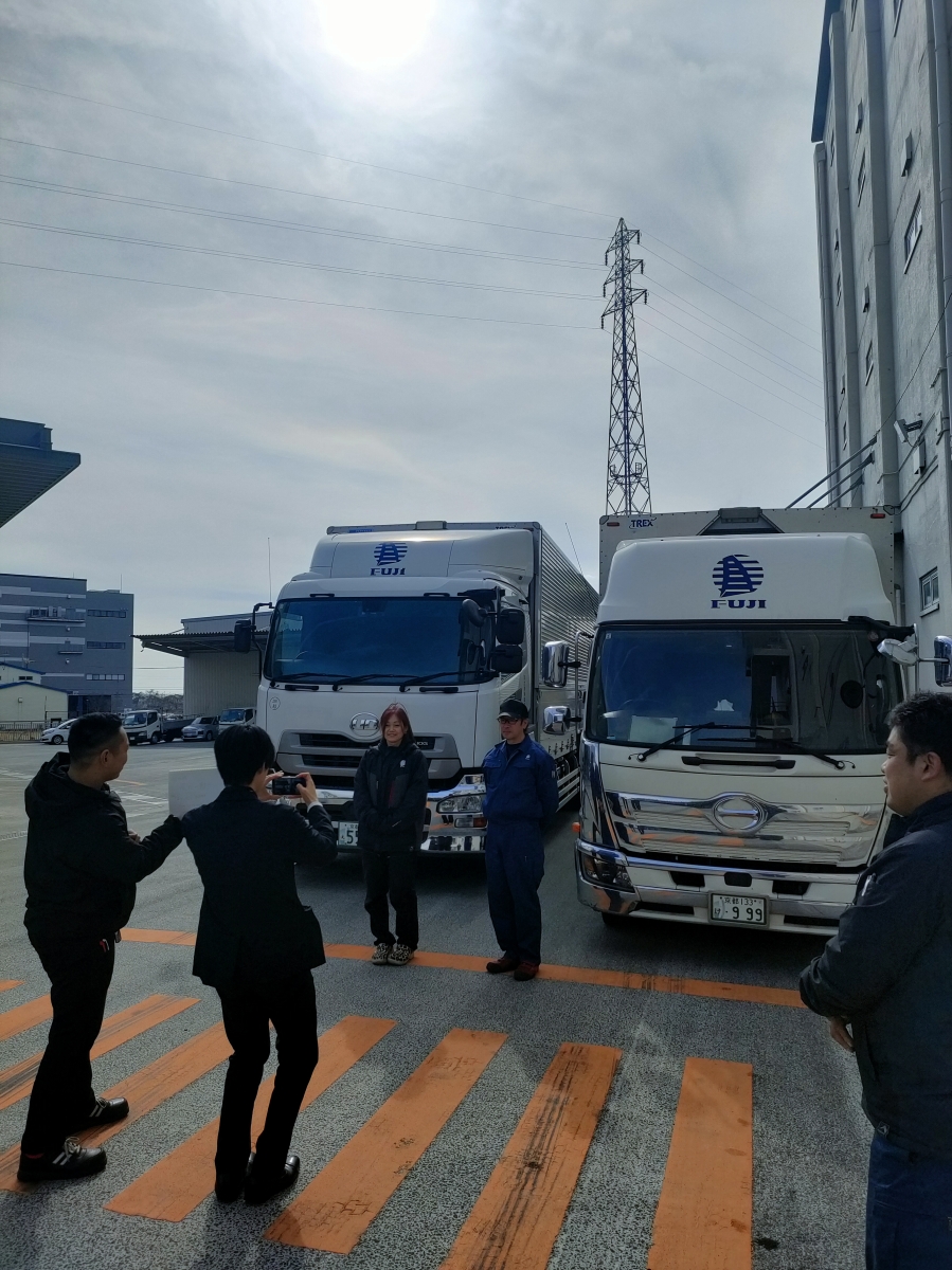 取材中、「ふそうトラックのロゴ“FUSO”って、もしかして冨士倉庫運輸の略ですか?」という話題でひと盛り上がり。